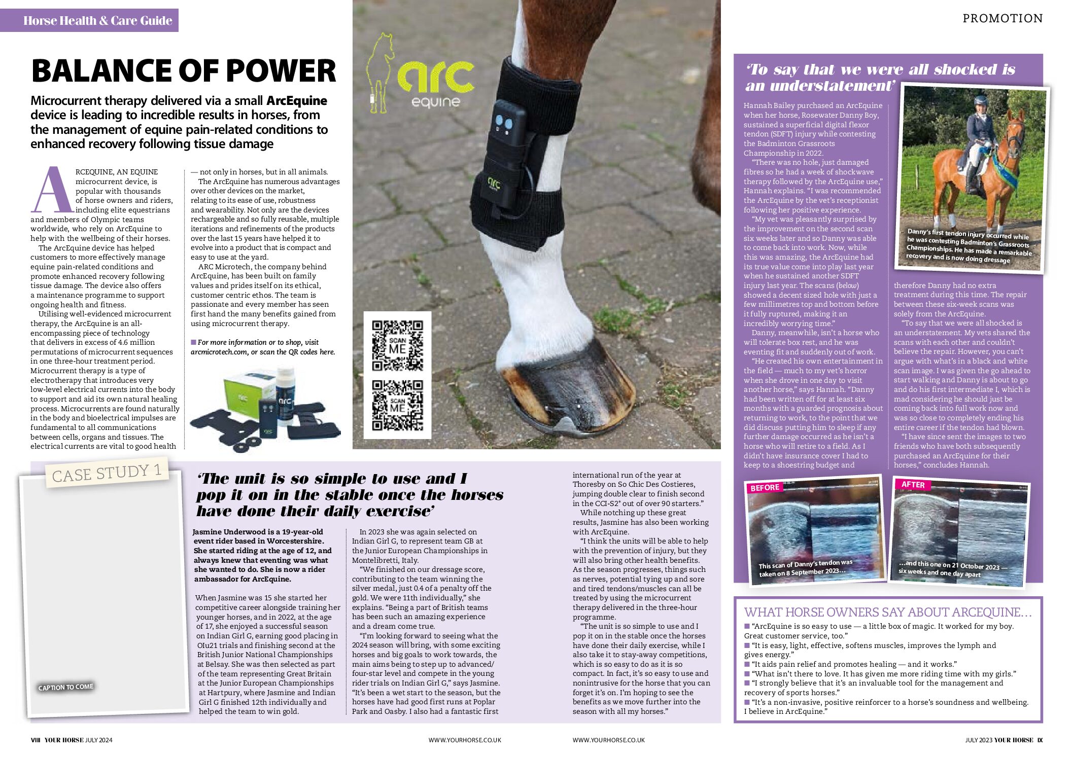 ARCEQUINE, AN EQUINE microcurrent device, is popular with thousands of horse owners and riders, including elite equestrians and members of Olympic teams worldwide, who rely on ArcEquine to help with the wellbeing of their horses. The ArcEquine device has helped customers to more effectively manage equine pain-related conditions and promote enhanced recovery following tissue damage. The device also offers a maintenance programme to support ongoing health and fitness.